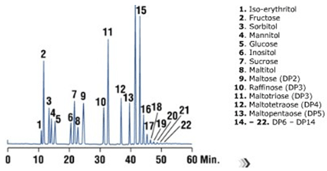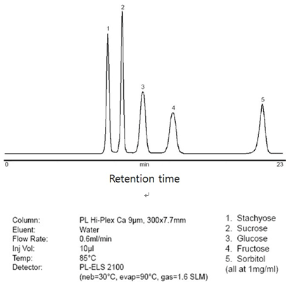 PL Hi-Plex Ca 컬럼을 이용한 당분석예 (ELSD검출)