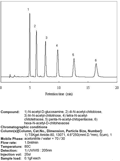 Amide-80컬럼을 이용한 Chito-oligosaccharide 분석예 (UV검출)