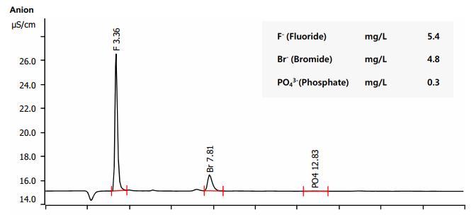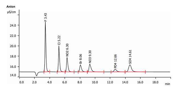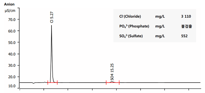 | 음이온 분석 | F- (Fluoride), Cl- (Chloride), NO2- (Nitrite), Br- (Bromide), NO3- (Nitrate), PO43- (Phosphate), SO42- (Sulfate) |