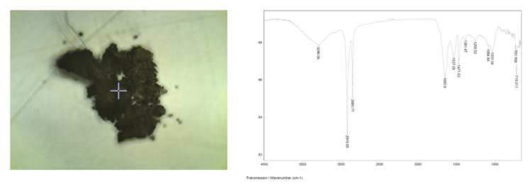 제약 이물질은 약액, 수액세트, 주사기 등에서 다양한 형태와 재질로 발견됩니다. 주로 스펙트로스코피, 현미경 분석 등을 통하여, 재질이나 성분을 파악하고 있습니다. 공정 과정이나 사용 중에 확인된 이물질은 그 성분을 파악함으로써 발생을 초래한 원인을 파악하는데 도움이 되고 있습니다. 최소 수십~수백 마이크로 수준의 이물질을 확인, 채취 후 분석을 수행합니다.