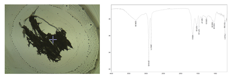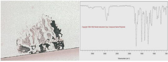 이물질분석결과 얼룩물질은 Polyimide임을 판명