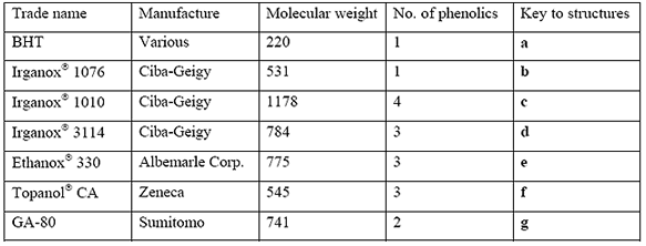 대표적인 2차 산화안정제의 종류(Phosphite)