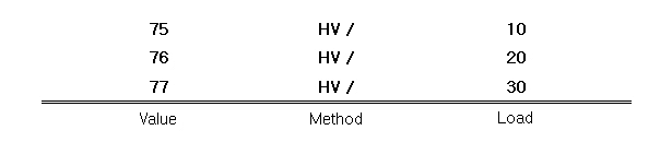 | 비커스경도 | 정사각추 압자 대변각 = 136o |