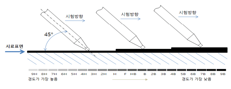 연필경도는 인쇄물이나 코팅필름의 기재와의 접착력에 의한 경도 및 표면의 경도를 평가합니다.
