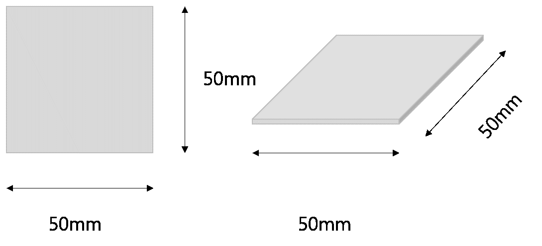 시편 : 50 mm x 50 mm (가로 x 세로) 권장