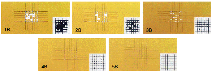 Cross-cut 시험 후 밀착성 평가의 개략도